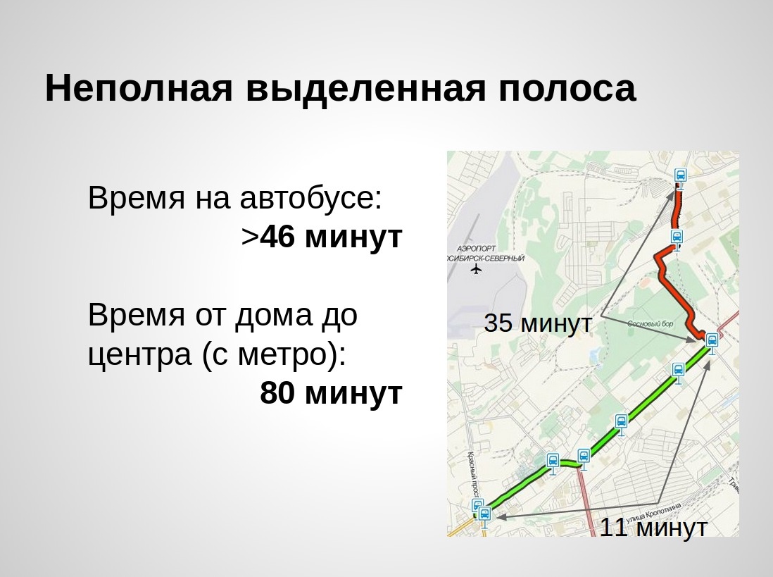 Пробки в Новосибирске давно стали невыносимыми, и старые способы решения либо бесполезны, либо не по карману. Альтернативы в виде трамвая или выделенных полос для автобусов пока встречают непонимание и резкое сопротивление (например, ГИБДД). Чтобы проблемы решать и показывать преимущества новых подходов, нужен пилотный проект. По инициативе журналиста Алексея Мазура мы составили презентацию с таким предложением.
